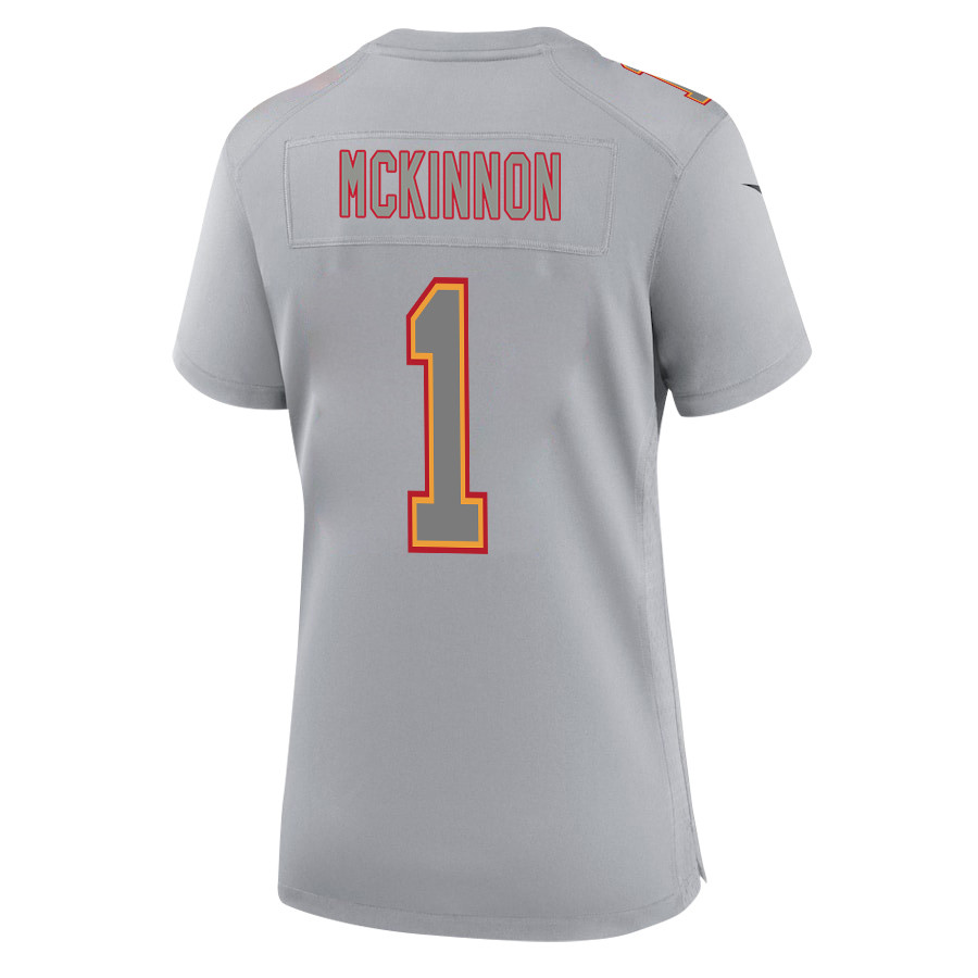 Jerick McKinnon 1 Kansas City Chiefs Super Bowl LVIII Champions 4X Atmosphere Fashion Game Gray NFL Jersey Women's